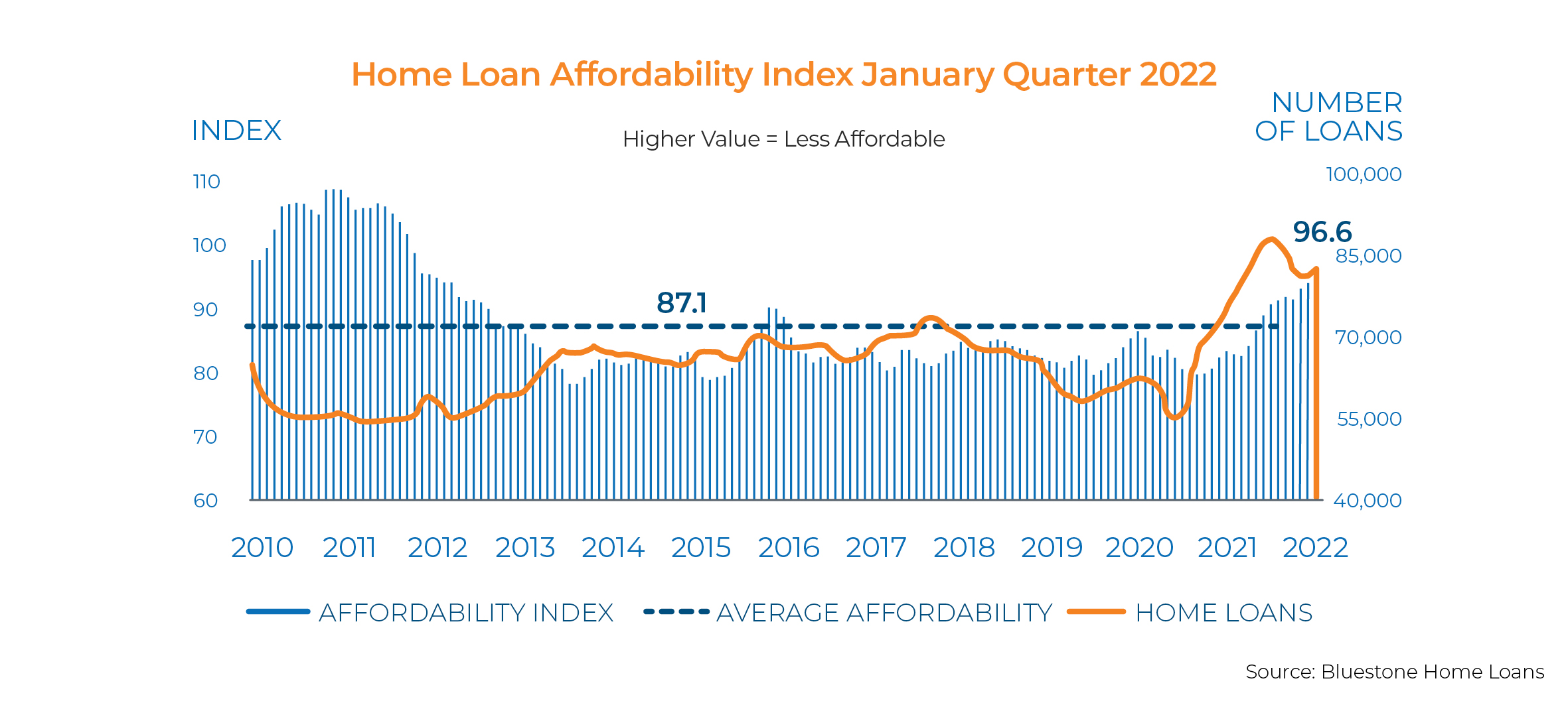 Bluestone Home Loan’s latest report showed that the affordability index increased to 96.6 in January.