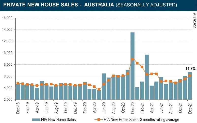 According to the Housing Industry Association (HIA), sales of detached homes increased by 11.3% in December.