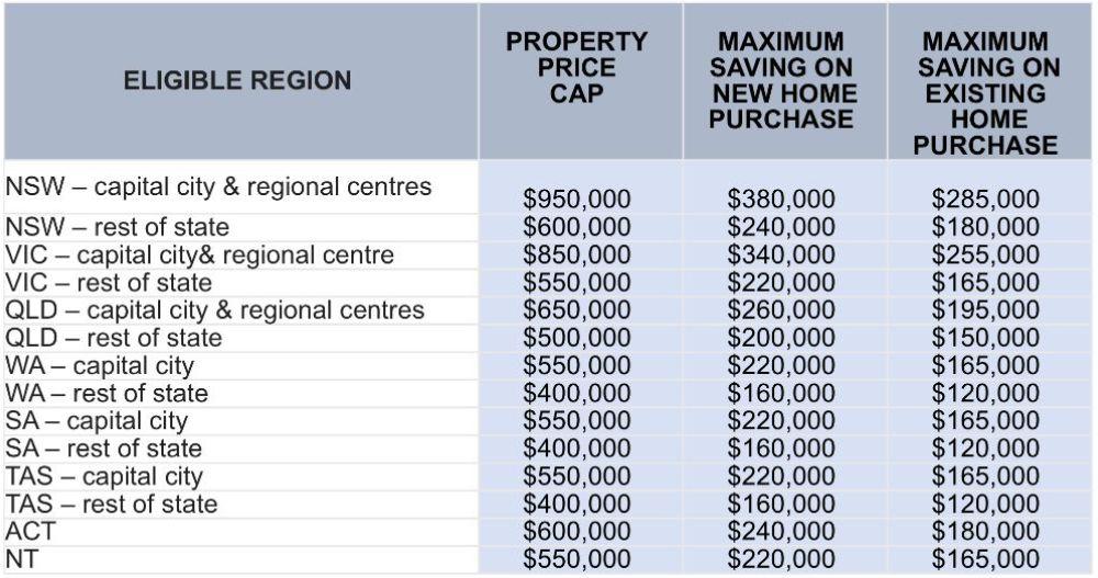 Property price caps would be set in each region. The table below shows the potential saving on new and existing home purchases: